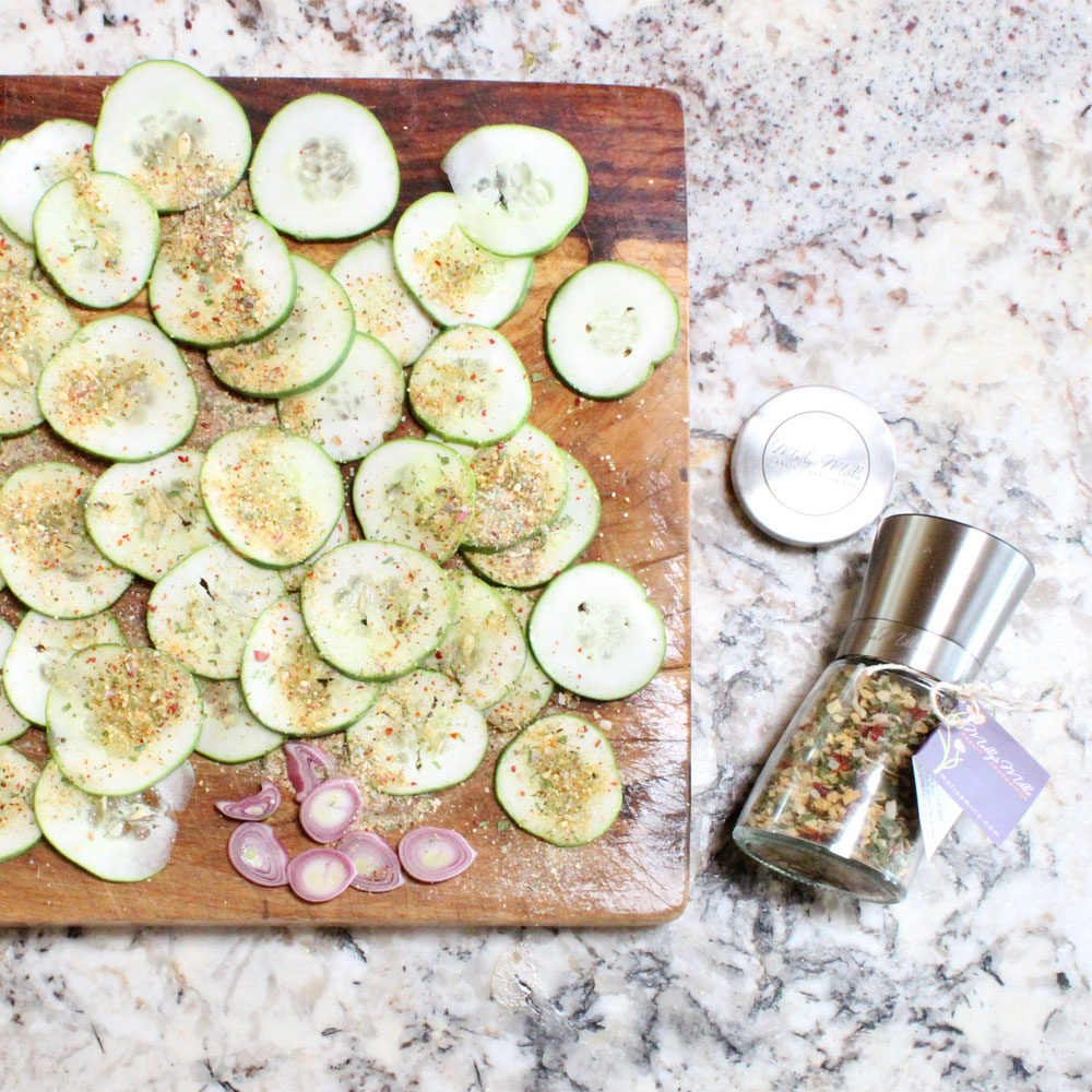 This week all of my ingredients are from the Capital City Public Market. My cucumber is from Water Wheel Gardens, My carrots are from Global Gardens, the honey is from Matthews Family Farms and of course I am using my Idahoan Blend!You will need your Molly’s Mills, I am using my regular Idahoan blend, a knife, a mason jar, sauce pan, liquid measuring cup, measuring spoons, and a cutting board.Use the knife to slice up your ingredients. My Serrano pepper is solely to add heat, so I just sliced it length wise.Season the ingredients liberally with Molly’s Mills. Let them sit for 20 minutes if possible.Measure two cups of apple cider vinegar and add it to your saucepan along with the bay leaves, mustard seeds, and dill.Measure and stir in two teaspoons of honey into the vinegar mixture.Bring the vinegar mixture to a boil and then reduce the heat and simmer for 10 minutes.While the vinegar is simmering, layer half of cucumbers into the bottom of the mason jar.Then add in the carrots or other veggies and top with the remaining cucumbers.Pour the hot liquid into the jar and screw on the lid. Refrigerate for at least 10 minutes before enjoying. The longer they sit, the better they will get!These quick pickles will last 10 days or more in the fridge, but they are so yummy that they rarely make it that long!