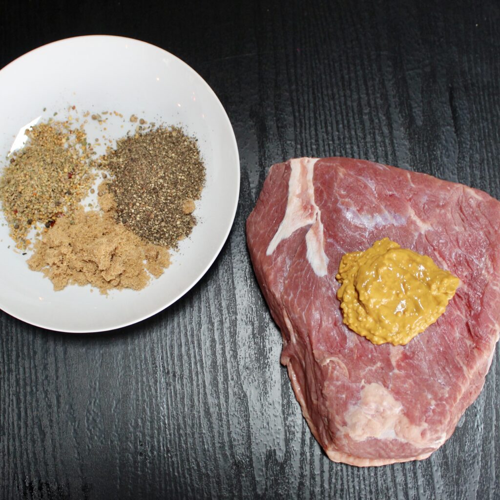 Step 1: Open and rinse corned beef under cold water. Whisk together all the dry ingredients for the rub in a small bowl.