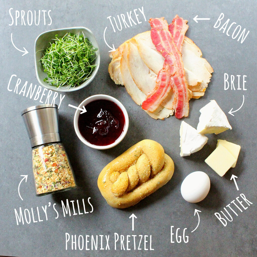 4. Spread cranberry jelly on inside pieces of pretzel and build your sandwich!